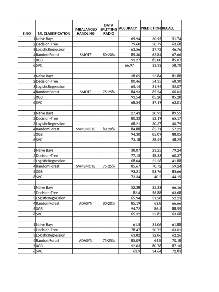 IMBALANCED SPLITTING ACCURACY PREDICTION RECALL