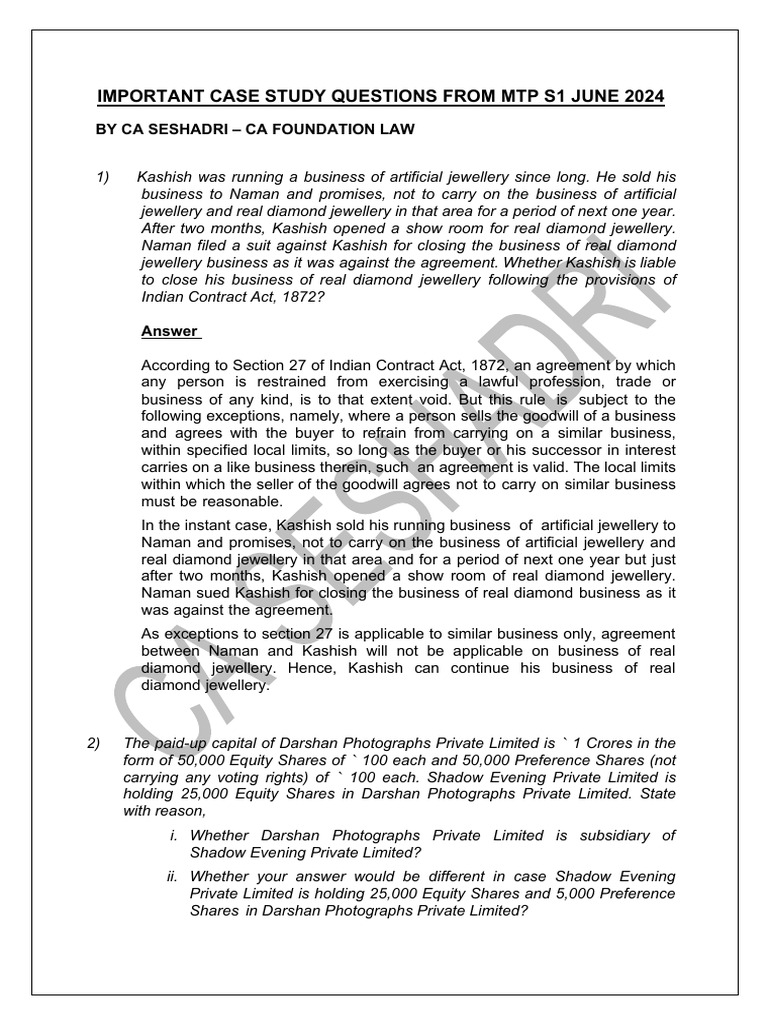 IMPORTANT CASE STUDY QUESTIONS FROM MTP S1 JUNE 2024