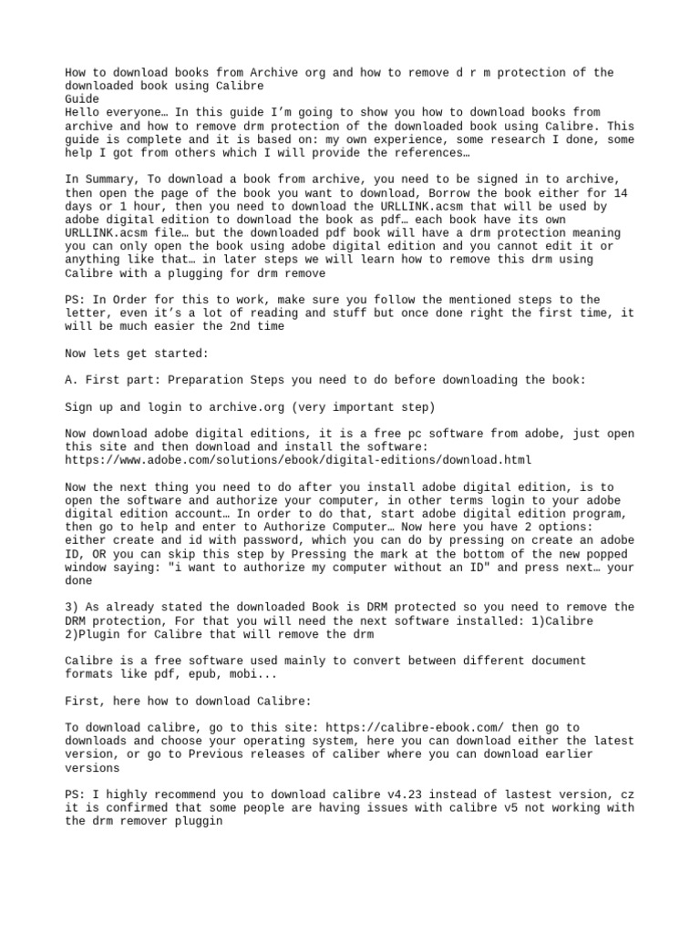archive and how to remove drm protection of the downloaded book using Calibre. This
