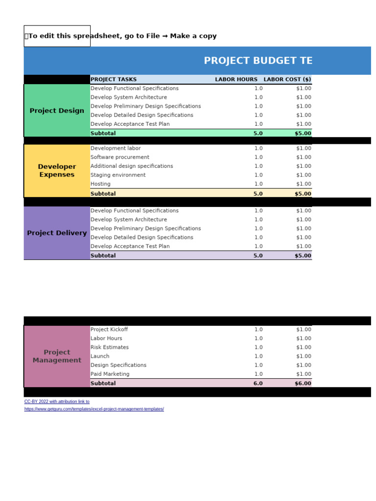 PROJECT TASKS LABOR HOURS LABOR COST ($)