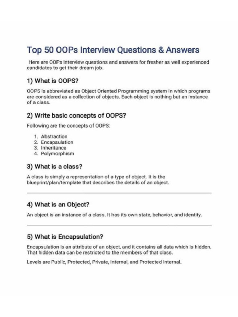 Levels are Public, Protected, Private, internal, and Protected Internal.6) What is Polymorphism?