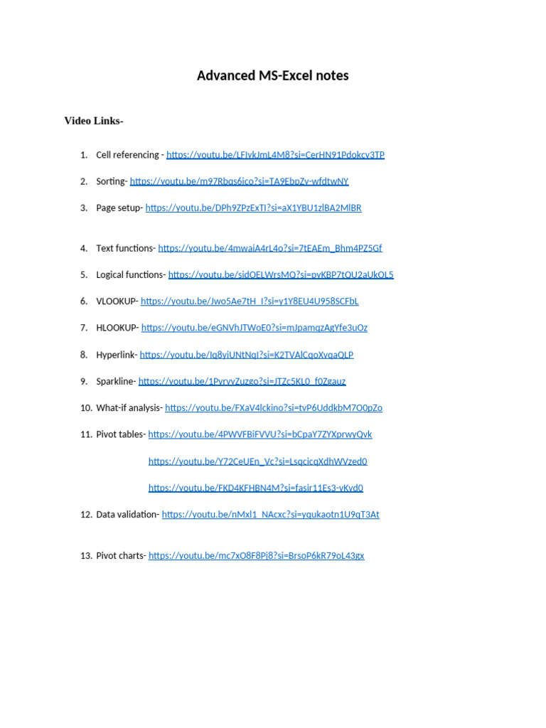 11. Pivot tables- https://youtu.be/4PWVFBiFVVU?si=bCpaY7ZYXprwyQvk
