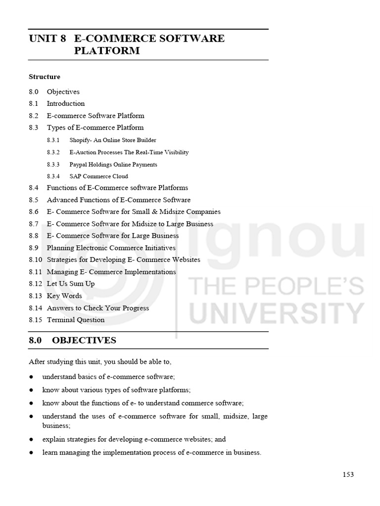 UNIT 8 E-COMMERCE SOFTWARE Software Platform