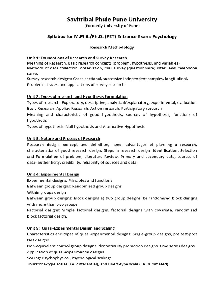 Syllabus for M.Phil./Ph.D. (PET) Entrance Exam: Psychology