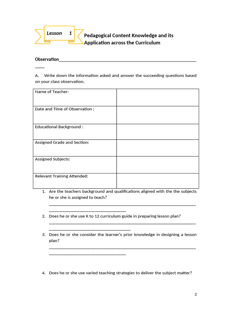 2. Does he or she use K to 12 curriculum guide in preparing lesson plan?