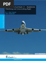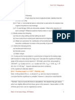 1. The static margin, stick-xed may be obtained in practice from ight tests in which the elevator angles to trim are found at certain speeds. In practice, the aeroplane is trimmed at a series of speeds by adjusting the tab setting, and both the elevator angle and tab angle are observed. Since the theory which relates the stick-xed static margin to the elevator angles to trim implicitly assumes a constant tab angle, show that a correction must be applied to elevator angles obtained in this way such that a3 corrected = + a2 where and are the observed elevator and tab angles to trim at a given speed. Suggest how you would determine a3 /a2 in ight. 2. A tailless aircraft is controlled in pitch by six elevons. Each elevon is actuated by an independent power control unit. These units are so designed that if a failure occurs the aected elevon is able to move until its hinge moment is zero. Assuming the failure of one such unit, calculate the elevon angles that will give longitudinal trim of the aircraft whose details are given below: Weight = 850kN Speed = Wing area S = 358m2 (h0 h) = CM 0 = +0.02 CM0 / = a1 = 4.0 a2 = b1 = -0.7 b2 = 70m/s EAS 0.15 -0.45 0.95 -1.05