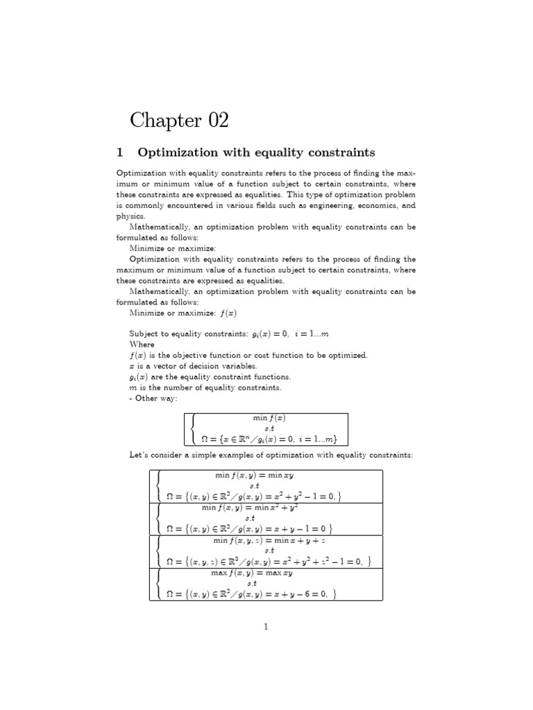 Subject to equality constraints: gi (x) = 0; i = 1:::m