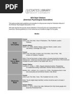 Sample Citation: Fisher, D., Russell, D., Williams, J., & Fisher, D. (2008). Space, time & transfer in virtual case environments. Kairos 12(2), 127-165. Retrieved from http:// kairos.technorhetoric.net/12.2/binder.html?topoi/fisher-etal/articleIntro.html Format: Author Last, First Initial. (Year of Publication). Article title. Journal Title, volume #(issue number), start page-end page. Advance online publication. doi: alphanumeric string or URL Note: In the following sample, the text includes neither page numbers nor a doi number. Therefore, the page number component is not included and the URL is substituted for the doi. Sample Citation: St. John, J., & Quinn, T.W. (2008). Rapid capture of DNA targets. Biotechniques 44(2). Advance online publication. Retrieved from http://www.biotechniques.com/default.asp?page=aop&subsection =article_display&display=full&id=112633