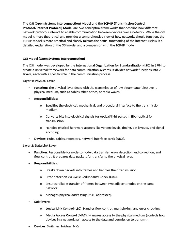 detailed explanation of the OSI model and a comparison with the TCP/IP model.