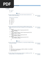38. How do you specify that you want a procedure MYPROCA to use Invoker's Rights? CREATE OR REPLACE PROCEDURE myproca AUTHID CURRENT_USER IS... Invoker's Rights are the default, therefore no extra code is needed. GRANT INVOKER TO myprocA; ALTER PROCEDURE myproca TO INVOKER; CREATE OR REPLACE PROCEDURE myproca AUTHID OWNER IS... 39. User REYHAN creates the following procedure: CREATE PROCEDURE proc1 AUTHID CURRENT_USER IS v_count NUMBER; BEGIN SELECT COUNT(*) INTO v_count FROM tom.employees; END; User BILL wants to execute this procedure. What privileges will BILL need? EXECUTE on REYHAN.PROC1 and SELECT on TOM.EMPLOYEES EXECUTE on REYHAN.PROC1 SELECT on TOM.EMPLOYEES BILL needs no privileges None of the above. The procedure will fail to compile because REYHAN does not have SELECT privilege on TOM.EMPLOYEES. 40. What is wrong with the following code? CREATE FUNCTION badfunc (p_param NUMBER(4)) RETURN BOOLEAN IS BEGIN RETURN (p_param > 10); END badfunc; P_PARAM must be declared AFTER the RETURN clause. P_PARAM must have a default value. The datatype of the IN parameter cannot have a precision or scale. It must be NUMBER, not NUMBER(4). RETURN (p_param > 10); is wrong because you cannot return an expression. The NUMBER datatype must have a scale as well as a precision.