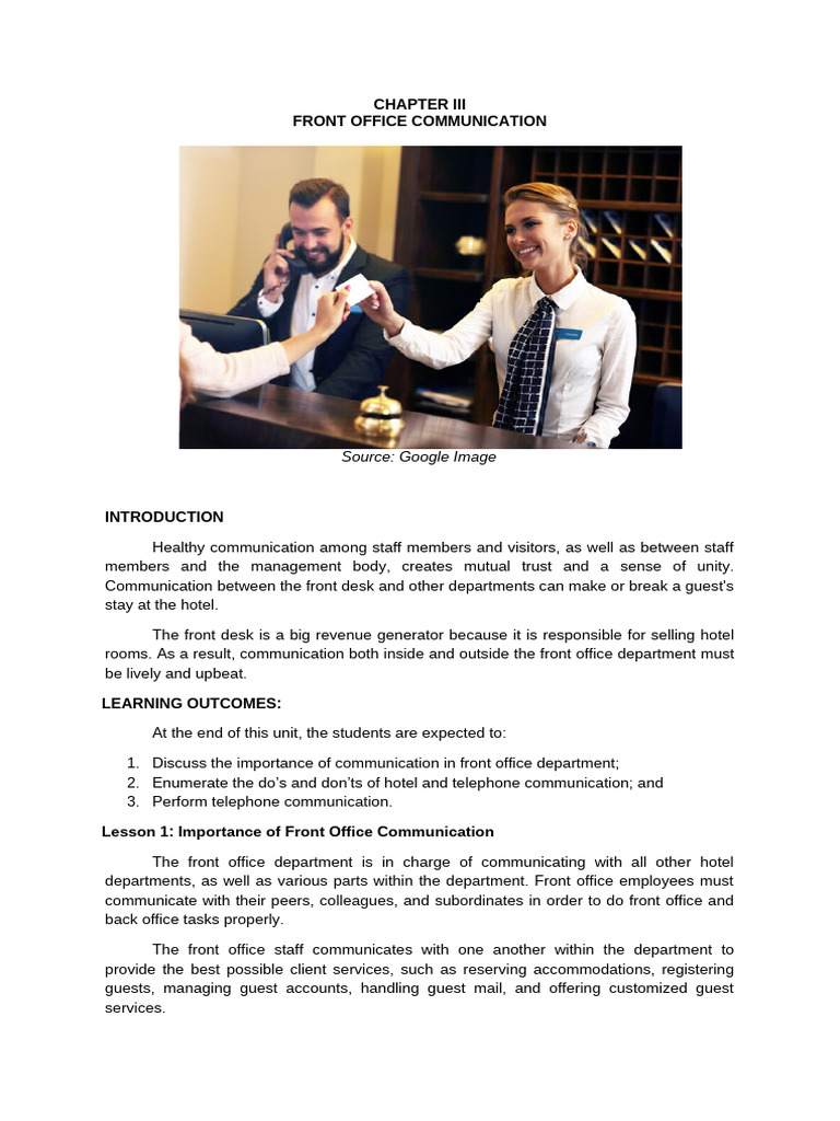 communicate with their peers, colleagues, and subordinates in order to do front office and