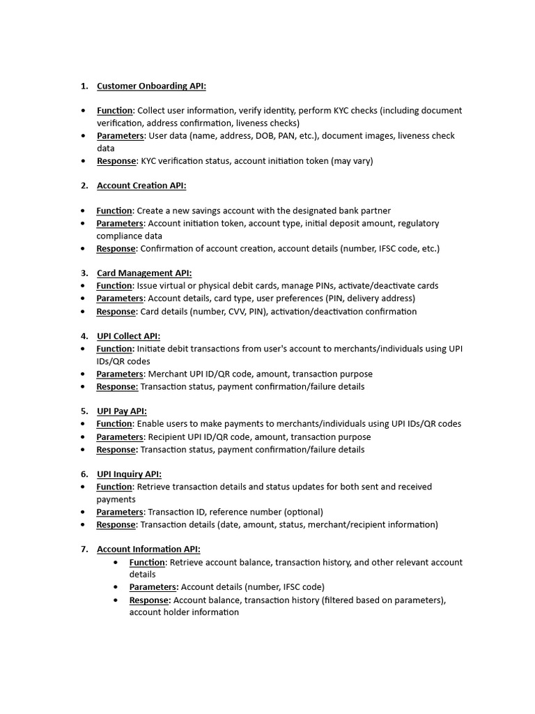 • Response: Confirmation of account creation, account details (number, IFSC code, etc.)