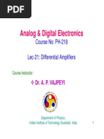 be proportional to the difference of the two applied input signals. Differential amplifier behaves