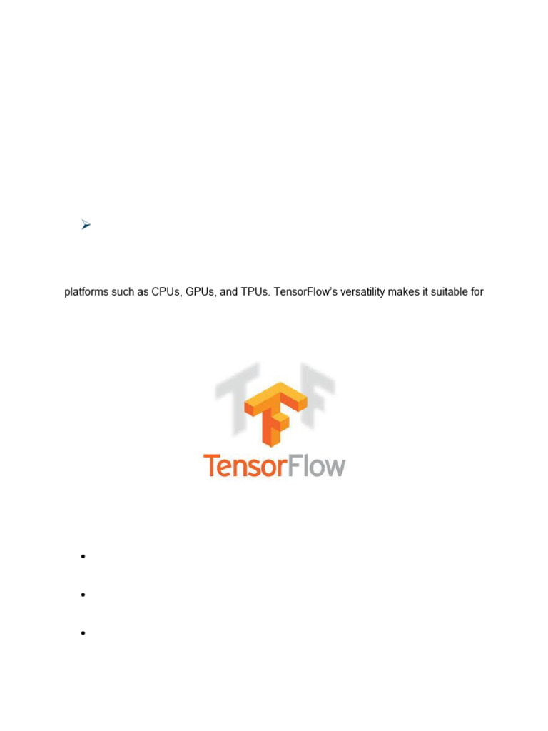 platforms such as CPUs, GPUs, and TPUs. TensorFlow’s versatility makes it suitable for