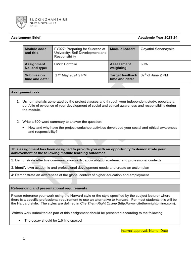 Module code FY027: Preparing for Success at Module leader: Gayathri Senanayake