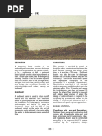 Costs Average annual costs for installation and maintenance (2 year useful life) are: Basin less than 50,000 ft3: Range, $0.24 - $1.58/ft3. Average, $0.73 per ft3. $400 - $2,400, $1,200 average per drainage acre. Basin size greater than 50,000 ft3: Range, $0.12 $0.48/ft3. Average, $0.36 per ft3. $200 $800, $600 average per drainage acre. Inspection and Maintenance Inspect BMPs prior to forecast rain, daily during extended rain events, after rain events, weekly during the rainy season, and at two-week intervals during the non-rainy season. Examine basin banks for seepage and structural soundness. Check inlet and outlet structures and spillway for any damage or obstructions. Repair damage and remove obstructions as needed. Check inlet and outlet area for erosion and stabilize if required. Check fencing for damage and repair as needed. Sediment that accumulates in the BMP must be periodically removed in order to maintain BMP effectiveness. Sediment should be removed when sediment accumulation reaches onehalf the designated sediment storage volume. Sediment removed during maintenance may be incorporated into earthwork on the site or disposed of at appropriate locations. Remove standing water from basin within 72 hours after accumulation. BMPs that require dewatering shall be continuously attended while dewatering takes place. Dewatering BMPs shall be implemented at all times during dewatering activities. To minimize vector production: Remove accumulation of live and dead floating vegetation in basins during every inspection. Remove excessive emergent and perimeter vegetation as needed or as advised by local or state vector control agencies.