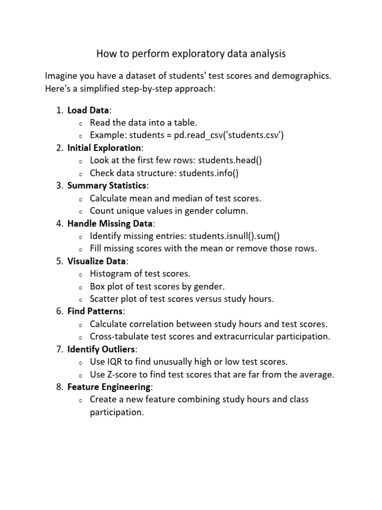 This workflow provides a structured approach to performing EDA, helping you understand the dataset's