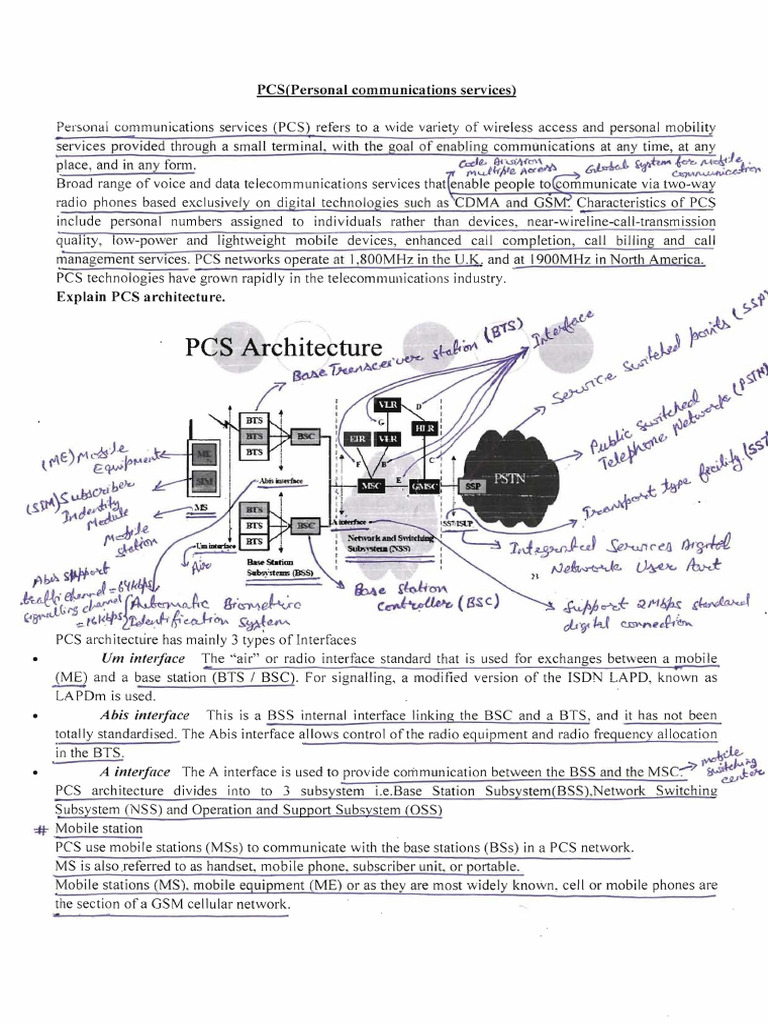 PCS architecture divides into to 3 subsystem i.e.Base Station Subsystem(BSS),Network Switching