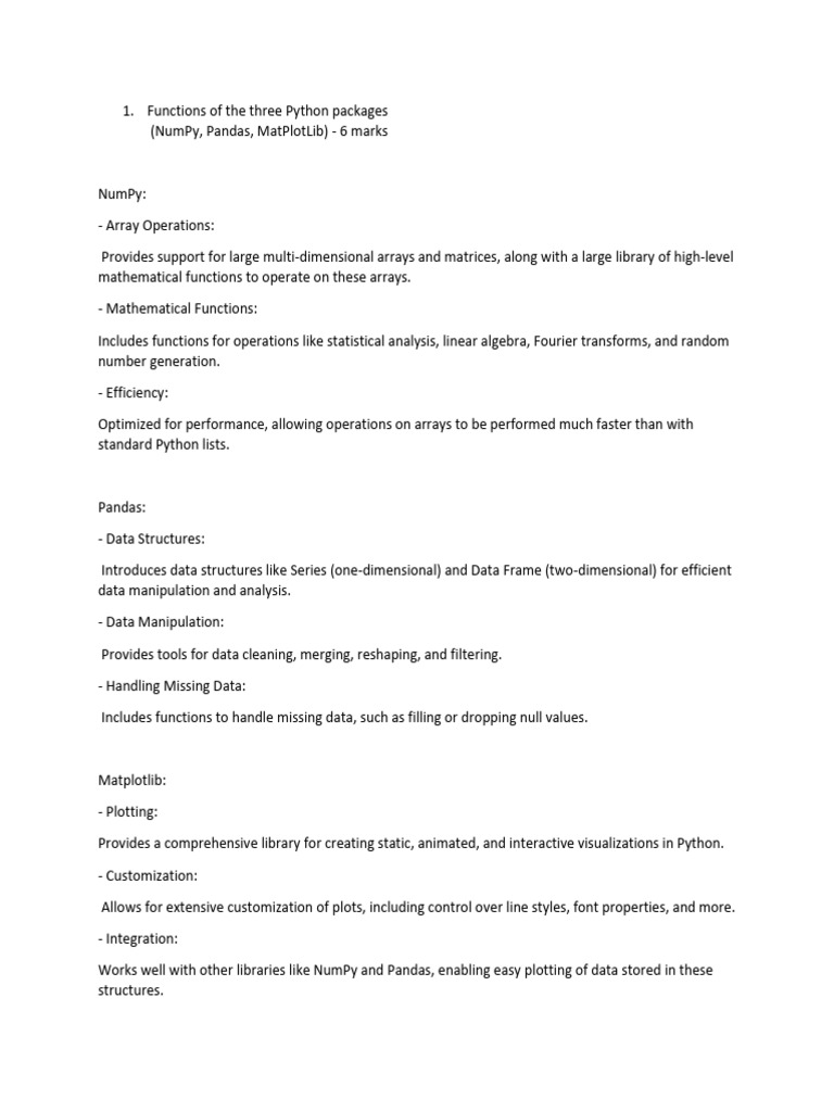 (NumPy, Pandas, MatPlotLib) - 6 marks