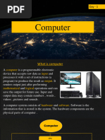 1. Hardware: The physical parts of the computer you can touch (monitor, keyboard, mouse, etc.).