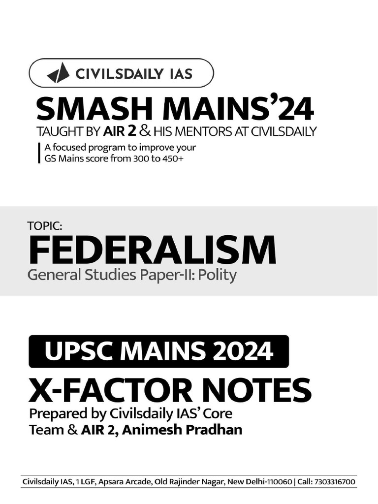 Federalism is a pivotal theme in the context of the UPSC Civil Services Examination (CSE)