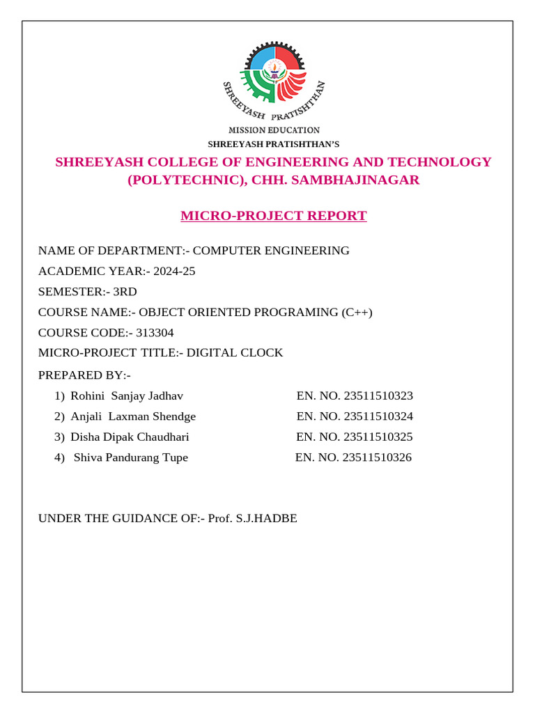 1) Rohini Sanjay Jadhav EN. NO. 23511510323