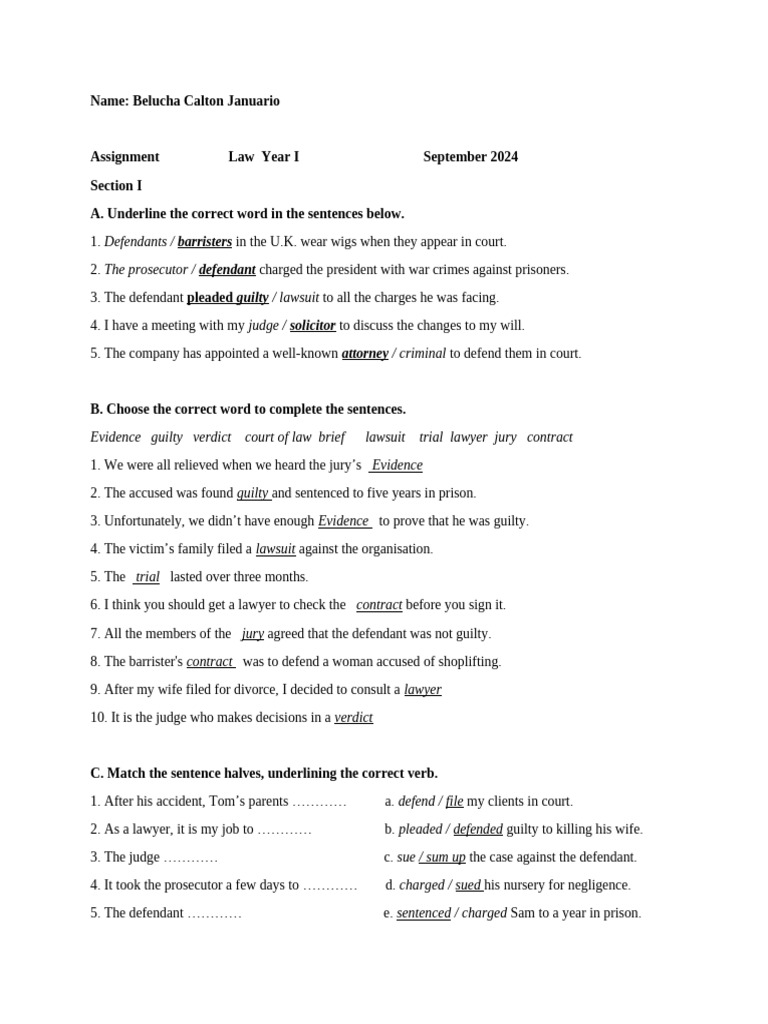 5. The defendant ………… e. sentenced / charged Sam to a year in prison.