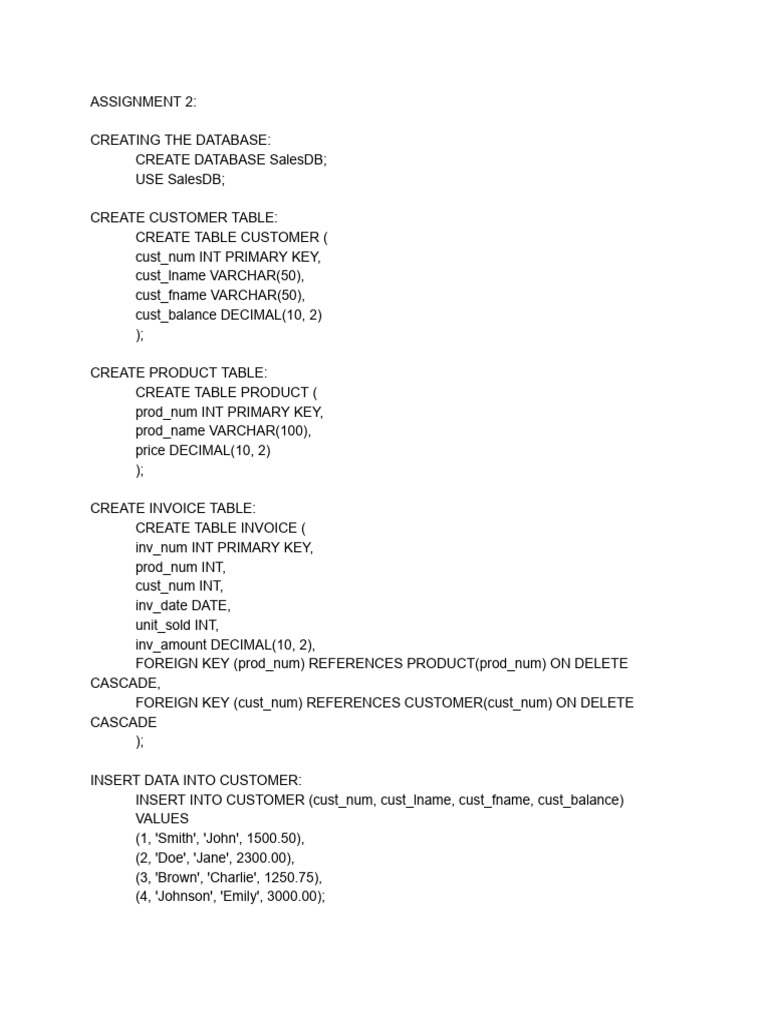 2. Write a trigger to update the CUST_BALANCE in the CUSTOMER table when a new invoice