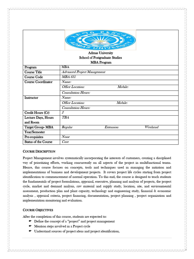 Hence, this course focuses on concepts, tools and techniques used in managing the initiation and