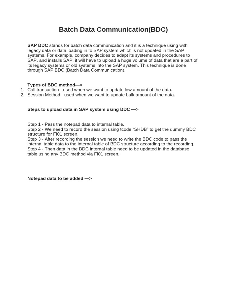 SAP BDC stands for batch data communication and it is a technique using with