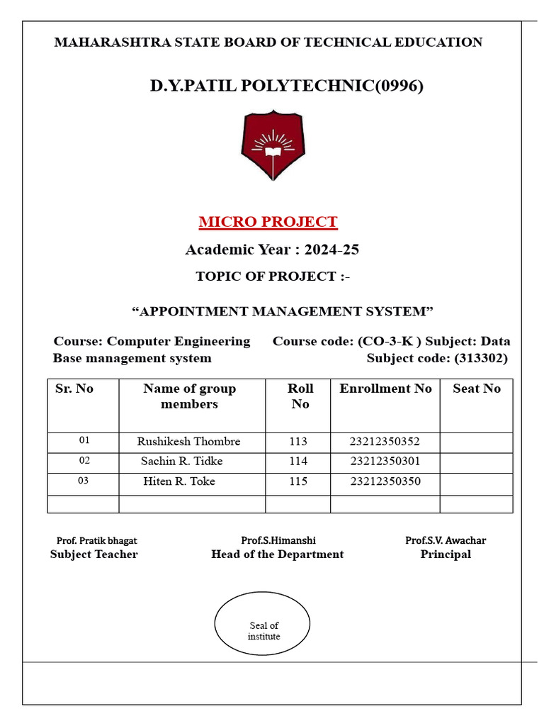 “APPOINTMENT MANAGEMENT SYSTEM”