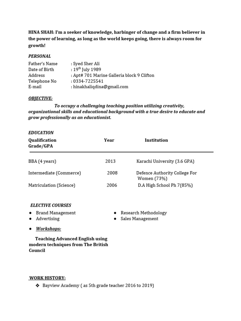 ❖ Worked at The City School Darakshan Campus as grade 3 class teacher. (2013 to