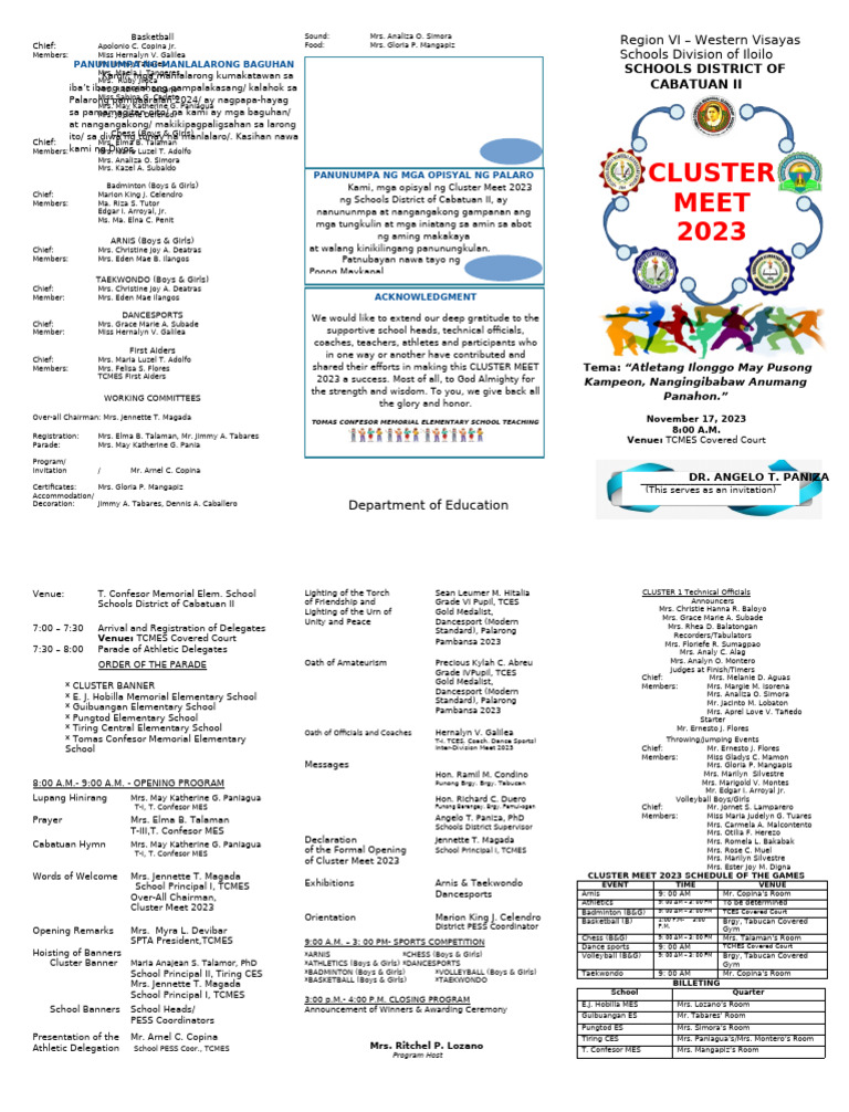 Words of Welcome Mrs. Jennette T. Magada CLUSTER MEET 2023 SCHEDULE OF THE GAMES
