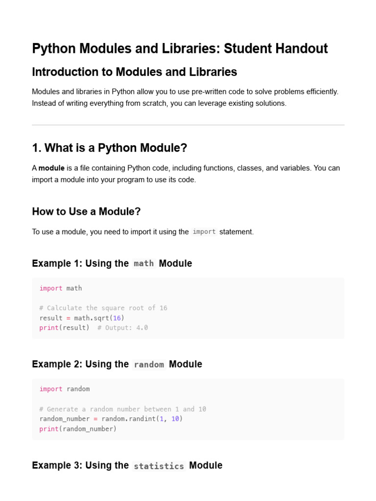 By using modules and libraries, you can save time and effort in your programming tasks. Happy