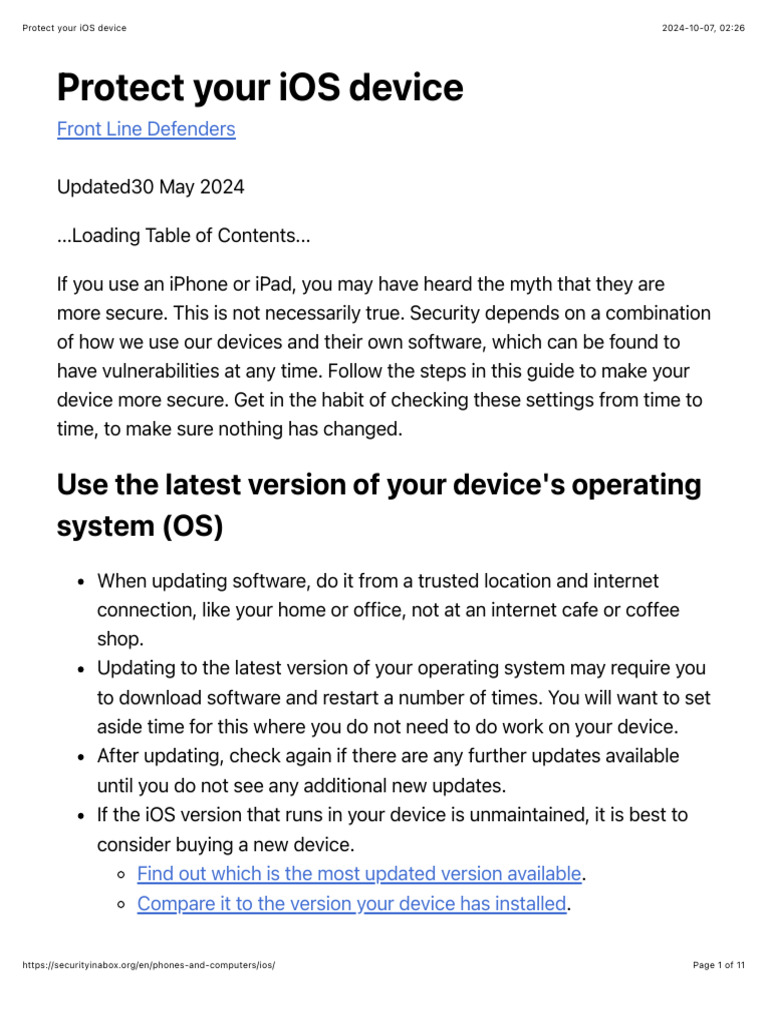 https://securityinabox.org/en/phones-and-computers/ios/ Page 1 of 11
