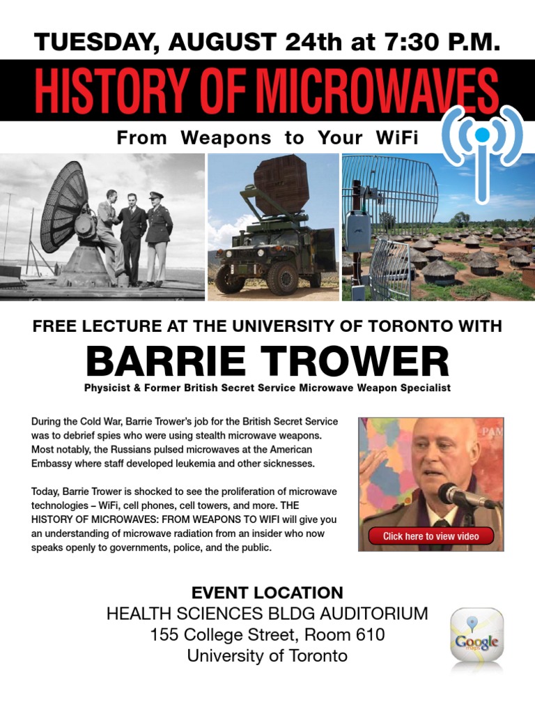 Physicist & Former British Secret Service Microwave Weapon Specialist During the Cold War, Barrie Trowers job for the British Secret Service was to debrief spies who were using stealth microwave weapons. Most notably, the Russians pulsed microwaves at the American Embassy where staff developed leukemia and other sicknesses. Today, Barrie Trower is shocked to see the proliferation of microwave technologies WiFi, cell phones, cell towers, and more. THE HISTORY OF MICROWAVES: FROM WEAPONS TO WIFI will give you an understanding of microwave radiation from an insider who now speaks openly to governments, police, and the public.