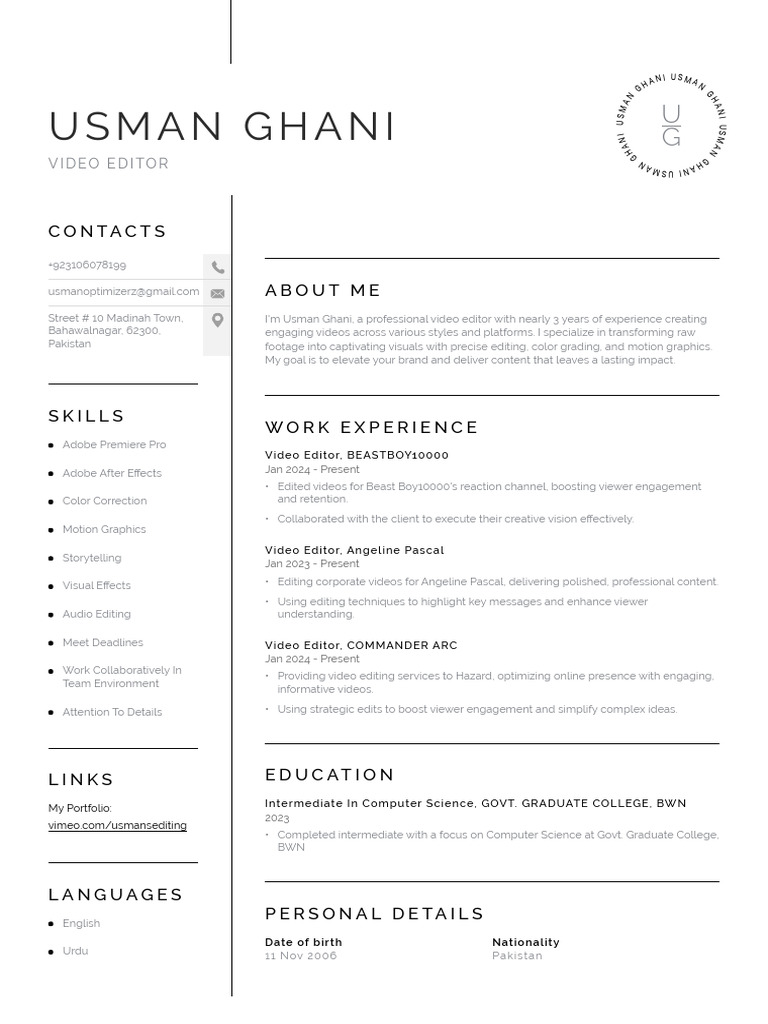 I'm Usman Ghani, a professional video editor with nearly 3 years of experience creating