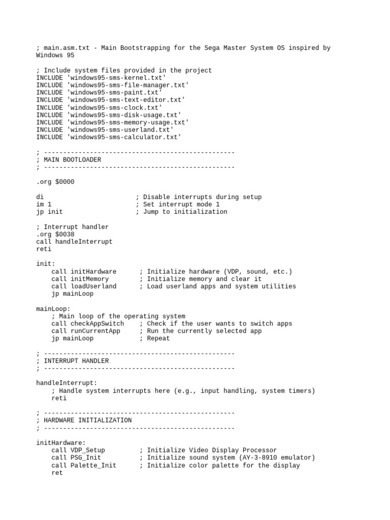 txt - Main Bootstrapping for the Sega Master System OS inspired by