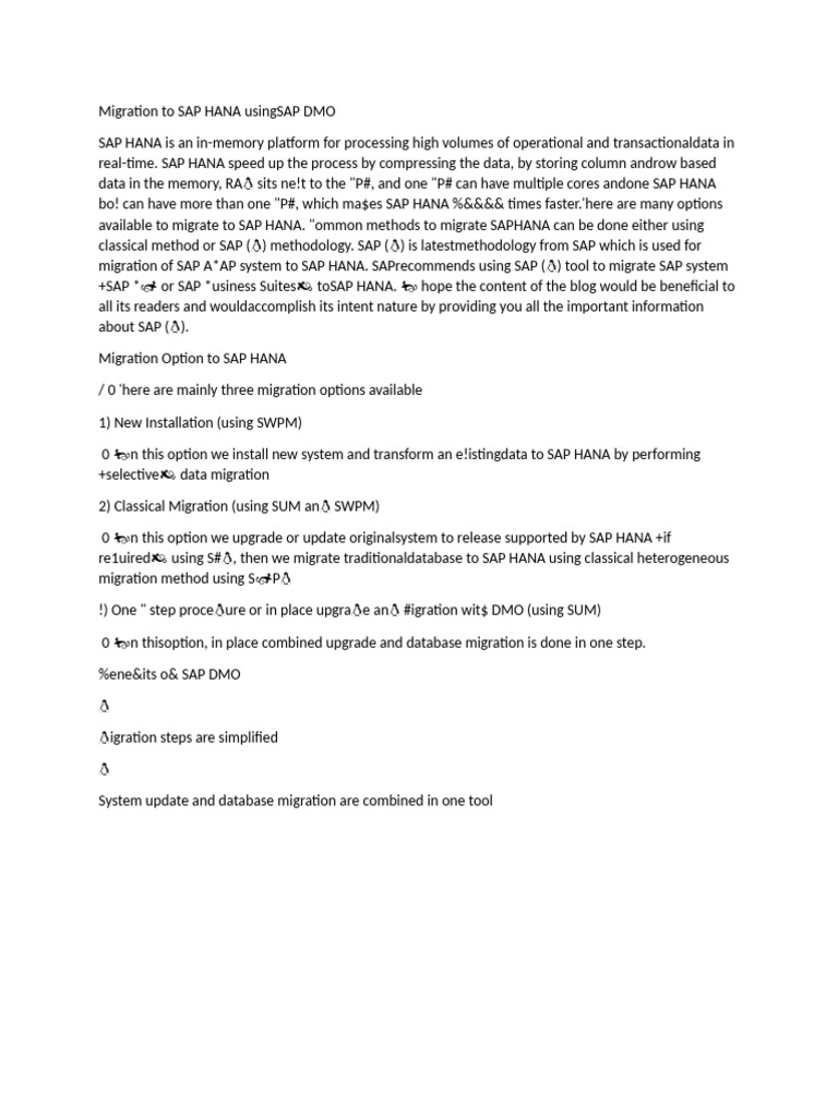 available to migrate to SAP HANA. "ommon methods to migrate SAPHANA can be done either using