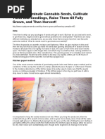 Chapter 3: Germinating Seeds Seeds you grow with can be any seeds from a marijuana plant, weather you decide to buy them from a seed bank, or if you just pull some out of a bag of buds. When choosing your seed, you want to inspect them for any cracks, splits or holes because these seeds will NOT grow. You want a seed thats a little bigger than a BB with no cracks, and one that isnt solid black. Now to start the germination process, you want to fill a little bowl with warm water and simply let your seeds sit in the water for a few hours (overnight is fine). After theyve soaked, wet a paper towel with warm water, place the seeds on it and fold the towel over so the seeds are covered. Place this on a plate and cover it with a solid bowl and set it in a warm spot. Check the seeds every few hours. Your looking for the seed to crack on the seam and a little white sprout to poke out. Once you see this and the sprout is about 1/81/4" out, its time to plant them.