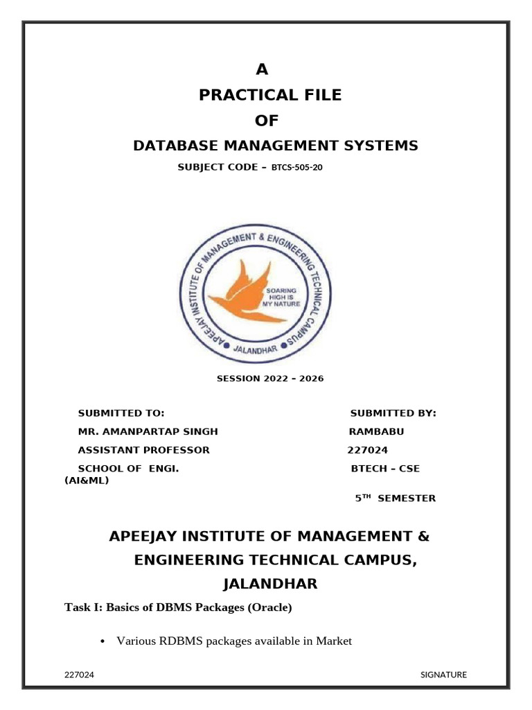 1. Sno VARCHAR2(5): Defines the Sno column as a VARCHAR2 type with a maximum width