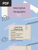 precise nouns, and colorful adjectives. Descriptive writing conveys a dominant impression