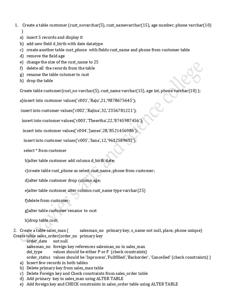 a) insert into salesman values('S01','Rijas','Mumbai','9784563214');