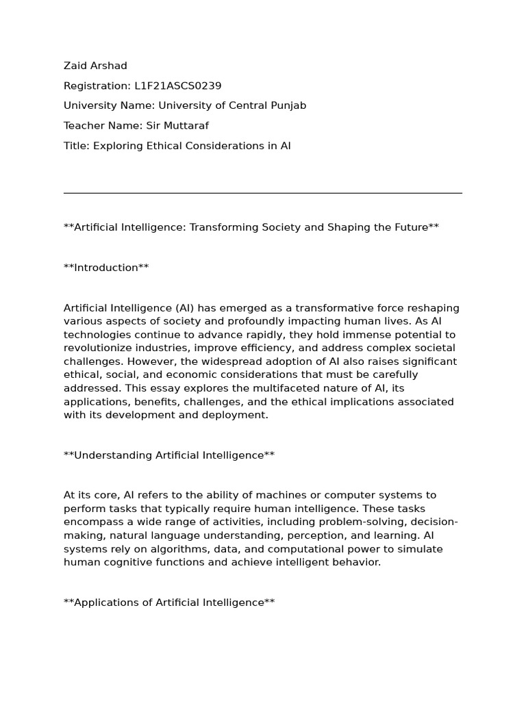 **Artificial Intelligence: Transforming Society and Shaping the Future**