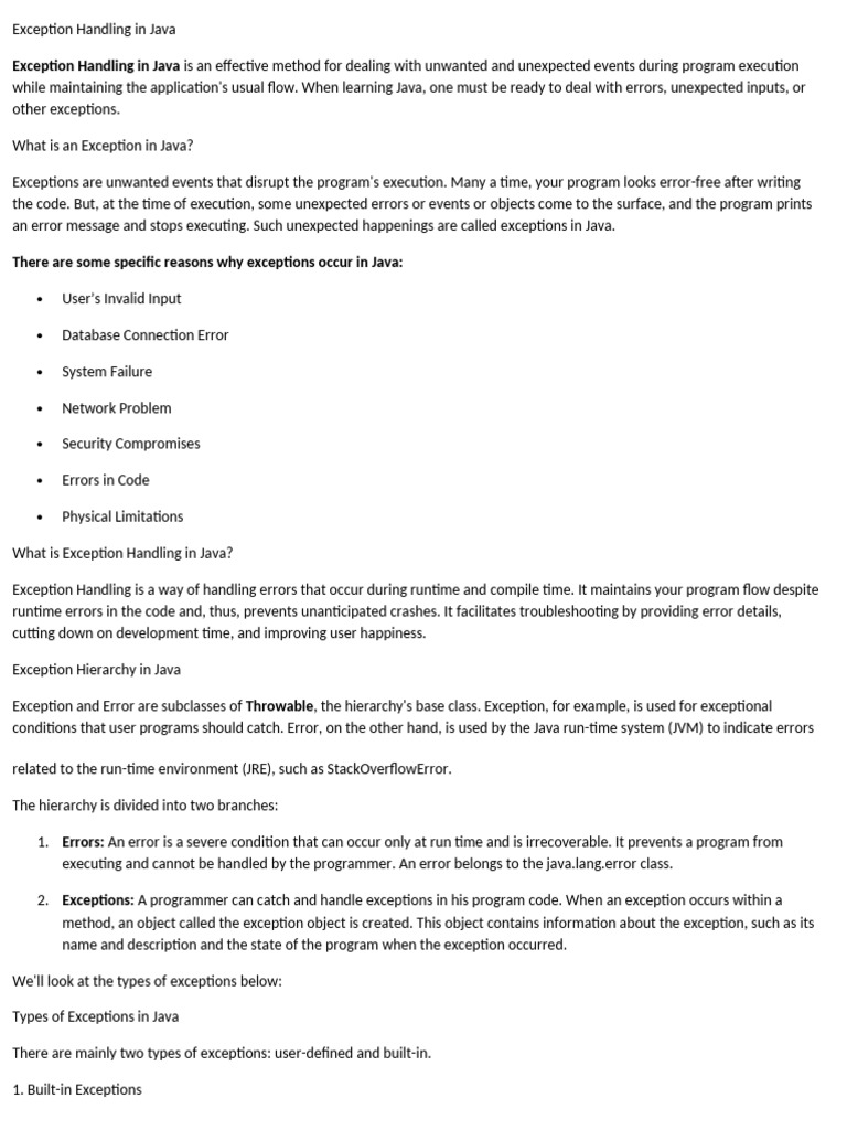while maintaining the application's usual flow. When learning Java, one must be ready to deal with errors, unexpected inputs, or
