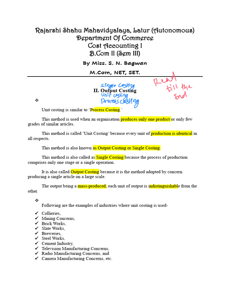This method is called ‘Unit Costing’ because every unit of production is identical in
