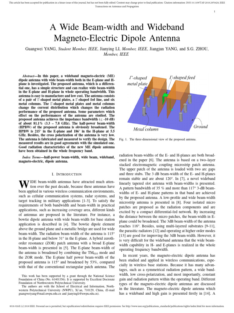 with wide h-plane beamwidth,” IEEE Transactions on Antennas and Member of IEEE in 2015.