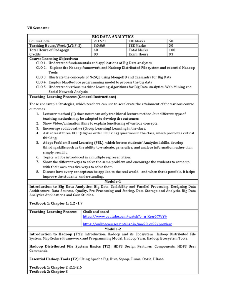 4. ArshdeepBahga, Vijay Madisetti, "Big Data Analytics: A Hands-On Approach", 1st Edition, VPT