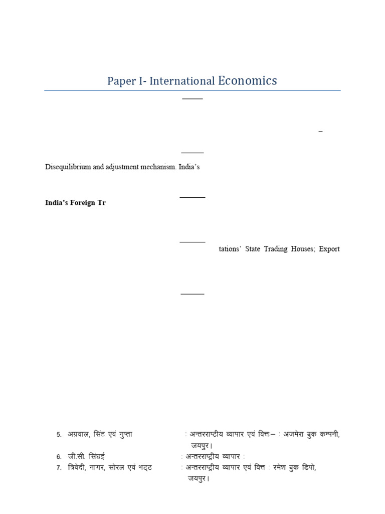 1. Trivedi, Jatana and Bajaj : International Trade and Finance, RBSA Publisher,