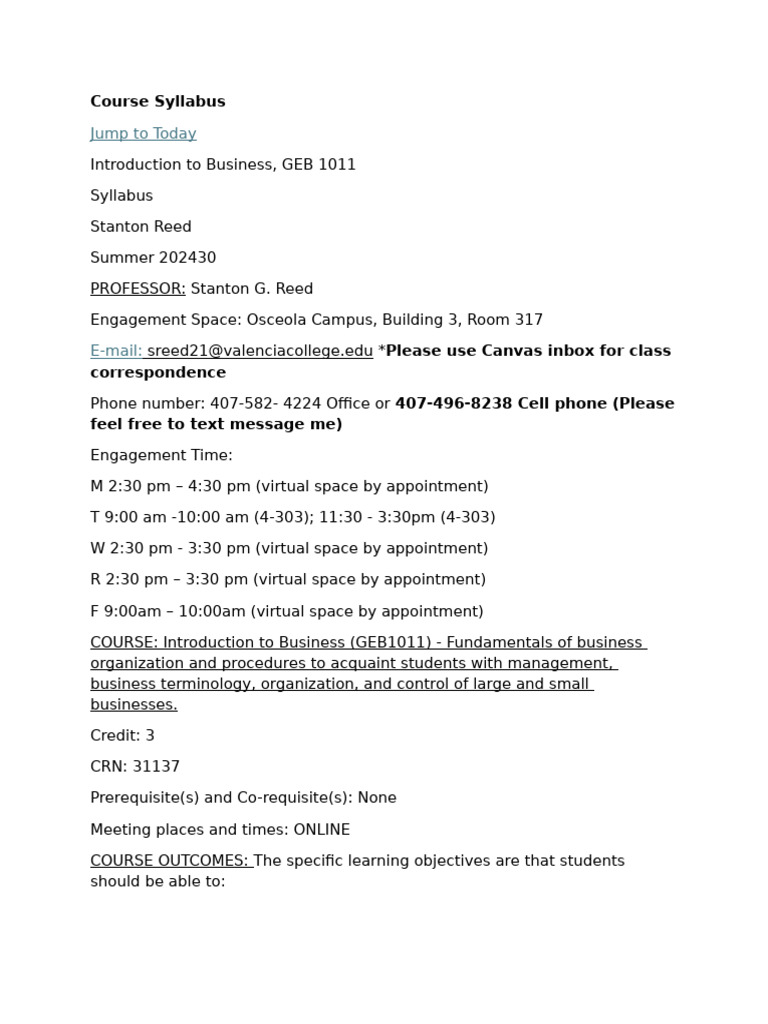 E-mail: sreed21@valenciacollege.edu *Please use Canvas inbox for class